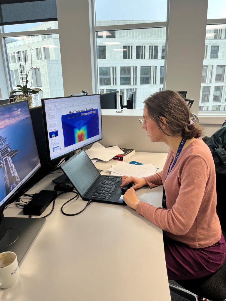 Forsker Karoline Husevåg Kvalvik i Norce Research har etterhvert tatt en doktorgrad i «High temperature borehole thermal energy storage in chrystalline bedrock». Men hun bedyrer at dette overhode ikke var noe hun hadde drømt om, eller et mål fra tidlig i utdanningen. Faktisk hadde hun i grunnen ikke tenkt at hun skulle ta den graden. Når det nå likevel ble slik, var det fordi hun rent privat ble avhengig av å ha 100% jobbgaranti. Og med en doktorgrad i beltet, var den saken klar. Så slik ble det.